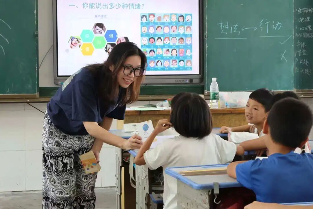 经过前期精心筹备,支教团队相继开展“请与我击掌吧”、“烦恼树洞”等特色活动。前者以手绘掌心、互动击掌搭建情感桥梁,让孩子在趣味创作中感受击掌的温暖;“我经常见不到爸爸妈妈”“我害怕考不好”……烦恼树洞承载下小小心事,老师进行针对性沟通,用耐心化解成长困惑。系列活动将心理教育融入日常,以知识与温情守护孩子们的心灵健康。孩子们在感受被理解、被关注的同时,也学会了更坦然地面对内心的情感。