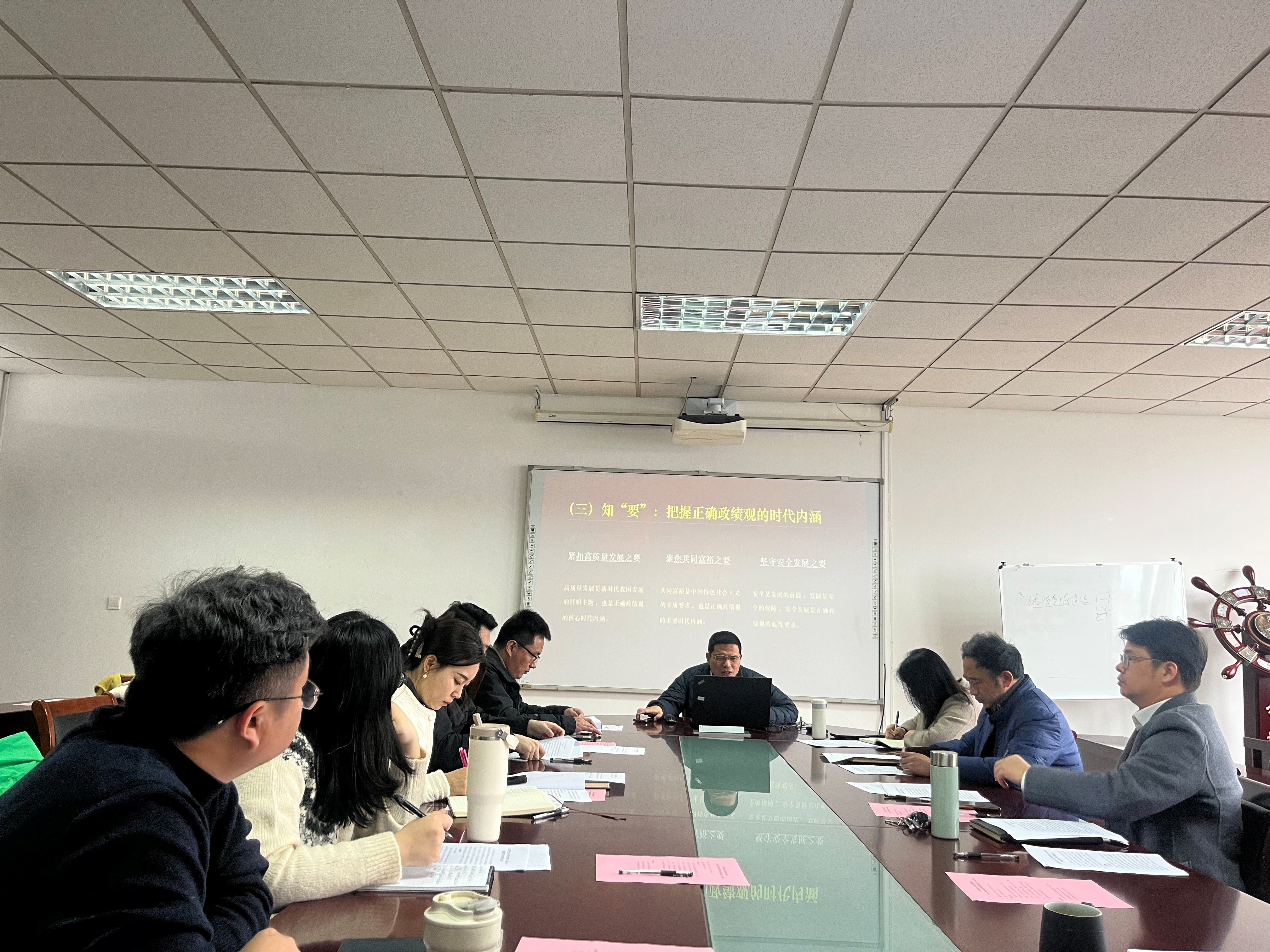 在交流研讨环节,学院领导班子成员紧扣会议精神,结合分管领域逐一发言。大家坚持问题导向,围绕学科建设的“显绩”与“潜绩”、人才引进的短期成效与长期培育、管理服务中的师生立场等关键议题展开深入剖析。大家一致认为,要坚决摒弃急功近利和形式主义,将“以师生为中心”的发展思想落到实处,以钉钉子精神破解发展难题,创造经得起实践和历史检验的实绩。